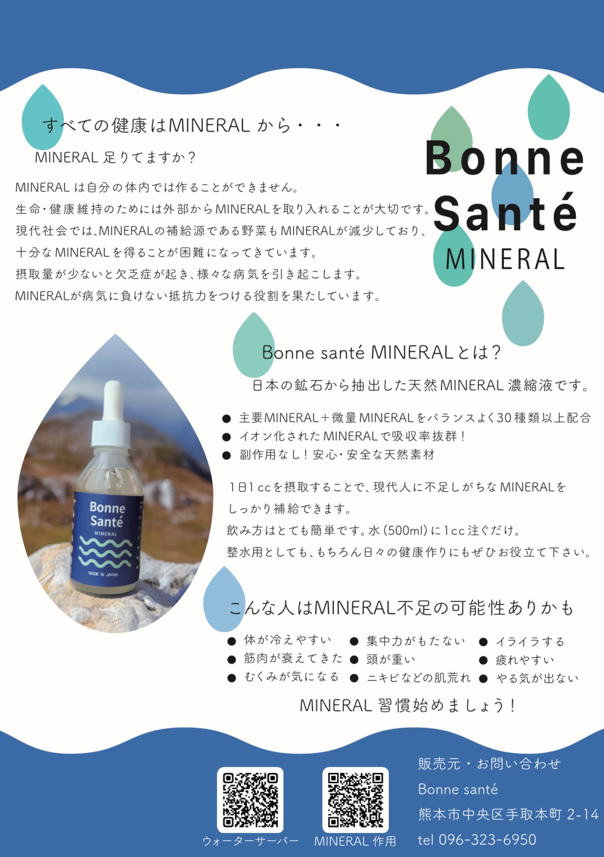 豊富なミネラルを含む日本の鉱石から、特殊な製法で抽出したミネラル濃縮液です。